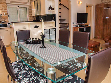 Located in the very center of the town of Bol, just 10m from the sea, this beautiful duplex apartment is a combination of old Dalmatian and modern interior and can accommodate 4 guests.