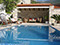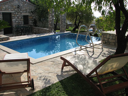 An attractive garden with Dalmatian plants with a covered sun veranda opening onto its private swimming pool.