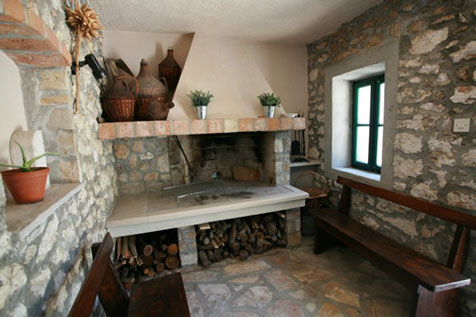 Traditional little stone house with a barbecue