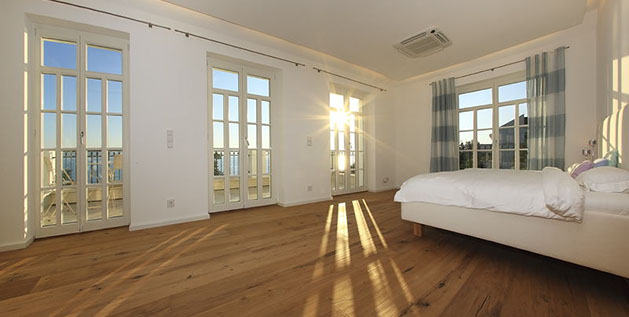Upper floor: master bedroom with ensuite bathroom (shower, bathtub and sauna), dressing room and balcony. Two bedrooms and bathroom.