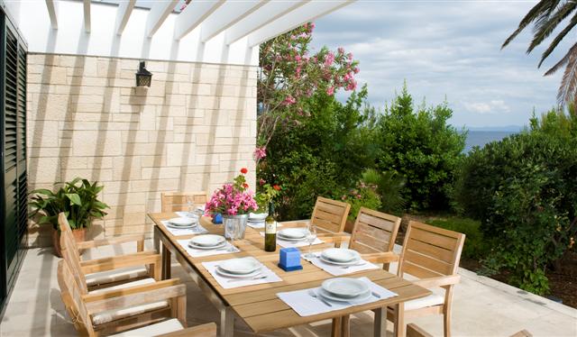 The central part of Villa consists of a spacious dining and living area with fireplace, fully equipped kitchen and three terraces. Each terrace has a wonderful sea view.