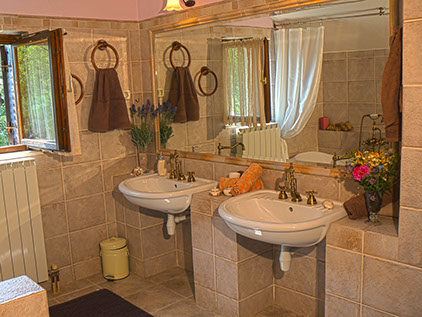 On the first floor are three bedrooms and bathroom. One room with two single beds (can be connected) and two rooms with double beds.