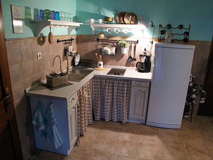 Ground floor has a small kitchen, summer room with a sofa (which can be a double bed when opened), bathroom with shower. All floors are connected with internal stairs.