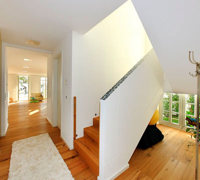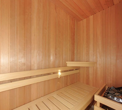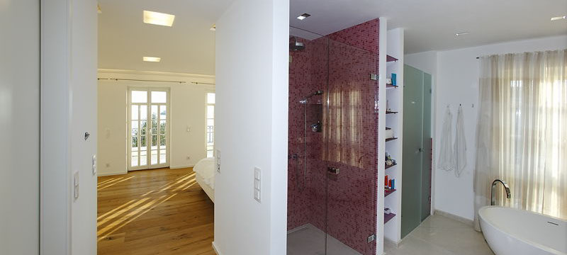 Upper floor: master bedroom with ensuite bathroom (shower, bathtub and sauna), dressing room and balcony. Two bedrooms and bathroom.