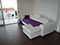 A large living room with a sofa that can be extended and offer an extra bed for 2 persons