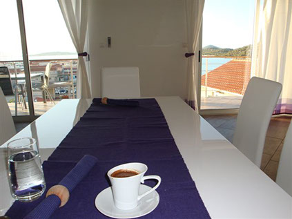Located in the heart of Tribunj, a few steps away from the beach, this luxury 107m2 apartment on the 2nd floor can accommodate up to 6 persons, it offers: