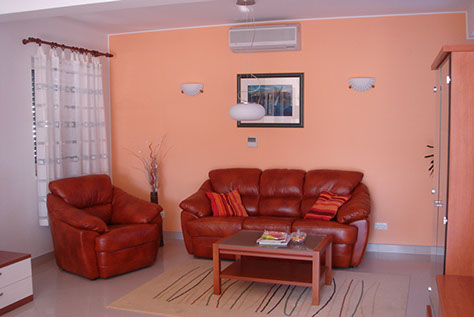 2nd floor: The second floor apartment has two bedrooms, one double and one with two twin beds, one full bathroom with shower, kitchen/dining and living room with balcony overlooking the property and sea view.