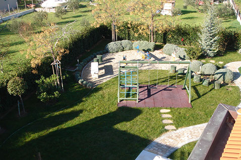 Right outside is a barbecue with patio for outdoor dining and a children's playground.