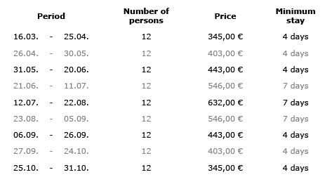 - 35,00€ per week for baby cot or high chair