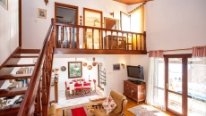 Ground floor: large living room with fireplace, fully equipped kitchen and dining area opening to two large terraces and pool, guests toilet.