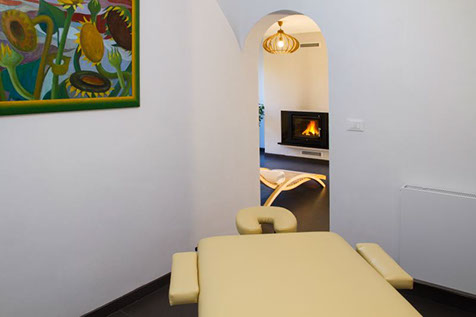 Enjoy the panoramic wellness area of 80 m2 overlooking the beauty of the landscape. The spa area includes a bio-Finnish sauna, massage room, shower, relaxing zone with deck chairs and a fireplace.