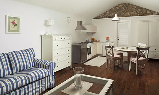A few steps away is the guest house equipped with a kitchen, a family room, a double bed and bathroom.