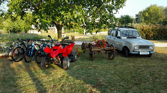 Depending on the season, some other surprises are waiting for you: eco fruits and vegetables from the gardens, wild mushrooms, asparagus, grapes, chestnuts, etc… are at guests’ disposal such as a legendary Renault 4 car with which you can go for a ride through the countryside (on request).