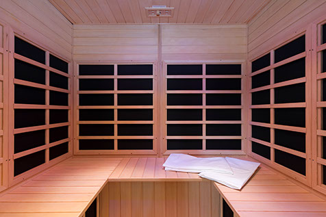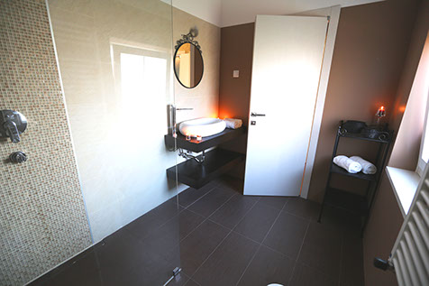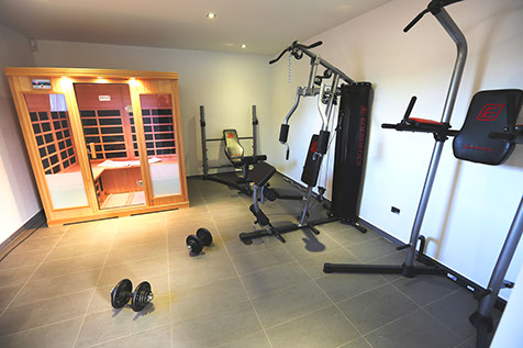 In front of the villa is 40 m2 large swimming pool, with a built-in rest and massage area. As part of the summer-house there is an outdoor dining area and a fitness room and an infrared sauna where you can relax. Also there is an additional bathroom with shower.