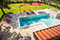 Ground floor: living room opening onto the terrace with swimming pool, dining area, fully equipped kitchen, one bedroom with twin beds, a bathroom.