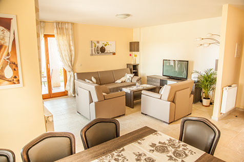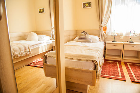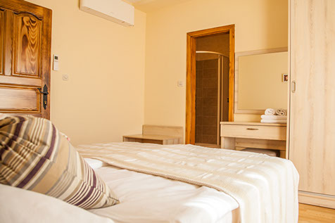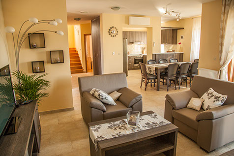 Upper floor: 3 bedrooms (one with a double bed, one with 2 single beds, one with twin beds), two bathrooms. Balconies.