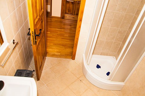 Upper floor: 3 bedrooms (one with a double bed & a single bed, two with a double bed), two bathrooms.