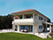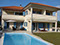 The facade of the villa is covered in white stone as are the walls surrounding the garden. The interior is decorated in a Mediterranean style.