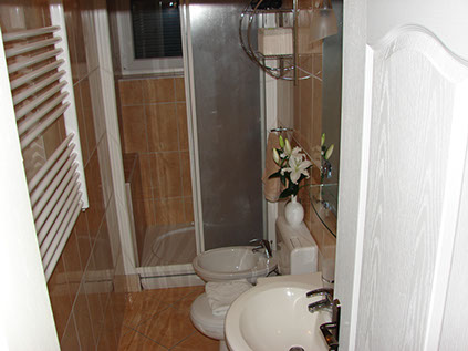 - Green Bedroom with two beds, bathroom with shower, sink, wc, bidet, hairdryer, air conditioning - cooling & heating. Covered balcony
