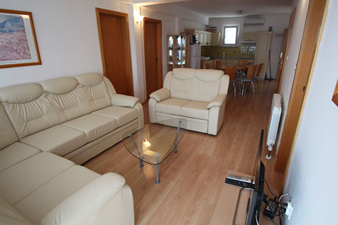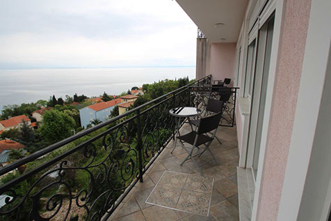 The apartment has also an equipped kitchen with dining room, living room and balcony with a beautiful view of the entire bay, Rijeka with the mountains in background and the islands Krk and Cres and Rijeka.