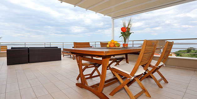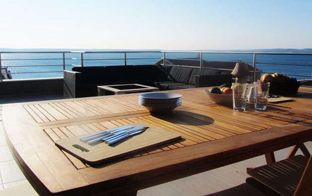 Enjoy the huge terrace (46m2) with all comfort and outdoor furniture (deck chairs, barbecue, dinner table and chairs) with an amazing view to the sea.