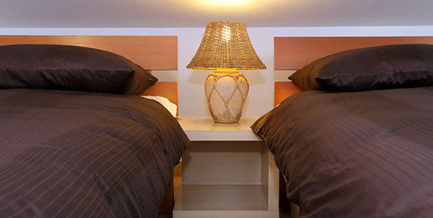 While the second level comprises in on bedroom with double bed and private balcony, a mezzanine with two singles beds that can be combined in one double bed, a bathroom with shower.