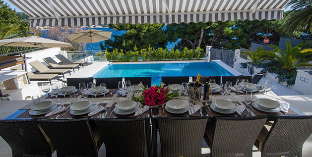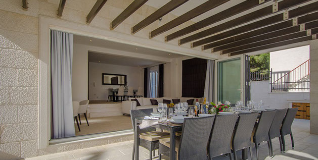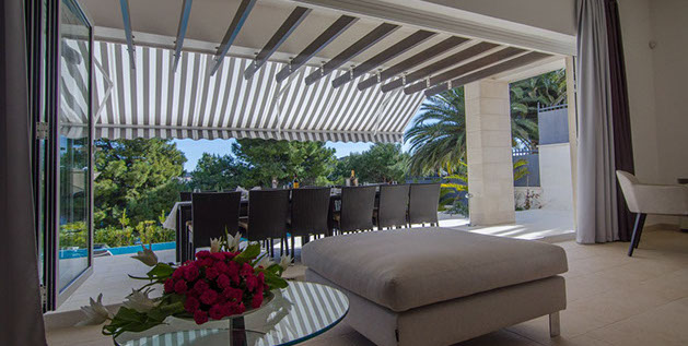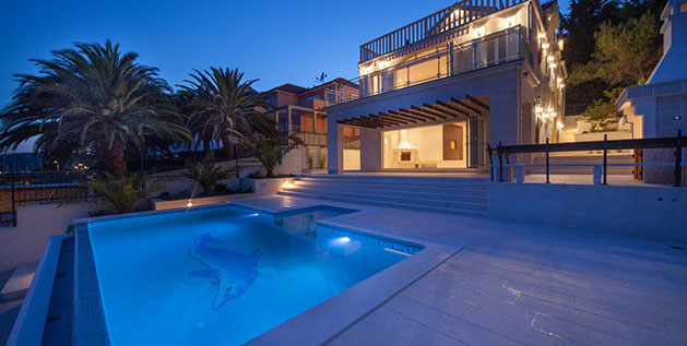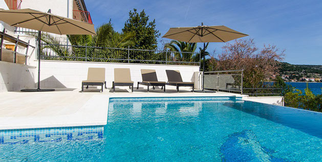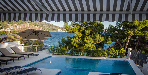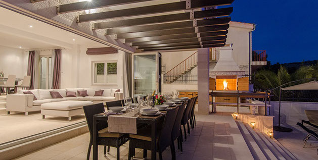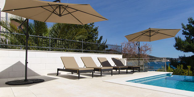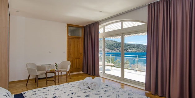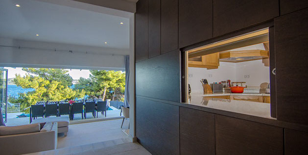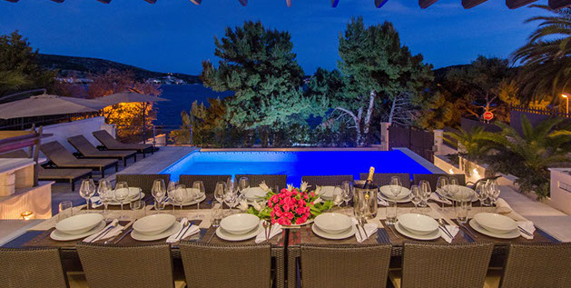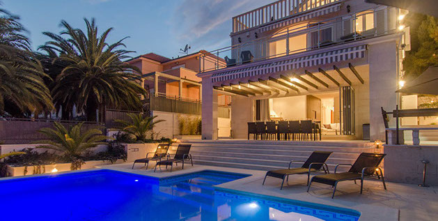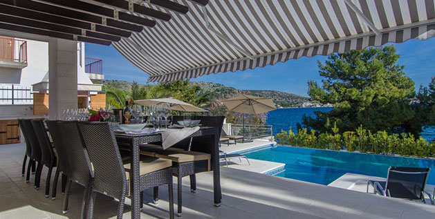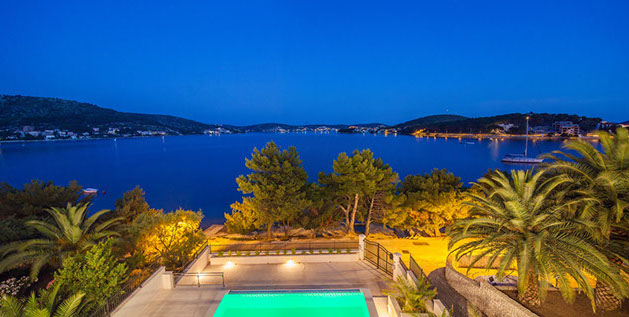 This brand-new south-facing villa is located on the sea front on a quiet road, enjoying stunning panoramic views of the islands and mainland to the south and the old town and the prestigious Frapa yacht marina to the South West. It is only a 30 minute drive from Trogir/Split Airport. The town has many restaurants and several of these are open throughout the year together with the local shops and market. The property is less than 5 mins walk from the local shops and restaurants.