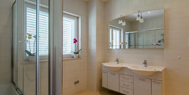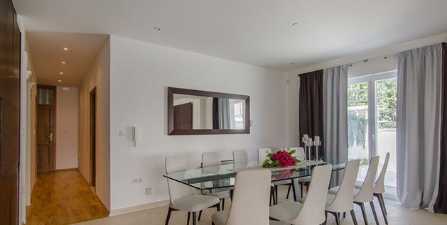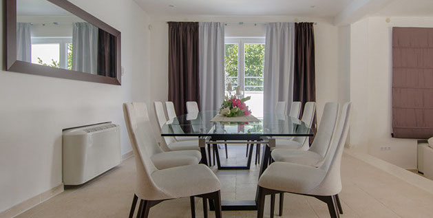 Villa offers 520m² of living space and comprises 7 bedrooms, 5 of which have wood parquet floors and all ensuite bathrooms. One bedroom is located on the top floor, three on the first floor and one on the ground floor and two in the basement. Three of the bedrooms have separate alcove as walk-in wardrobes.